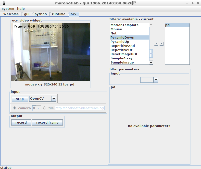 A few nights ago, in spite of our best efforts, GroG and I couldn't get OCV to run under MRL, so the project went on a back burner for a while and I switched over to playing with a Raspberry Pi where most of the MRL ARM dev work is going on.