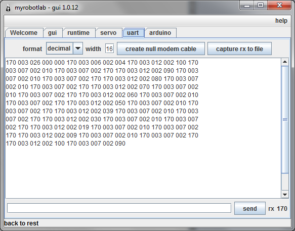 This is the data sent to MRLComm.ino when the test runs. It should be pretty simple to at least compare a baseline rx capture file with a new test.