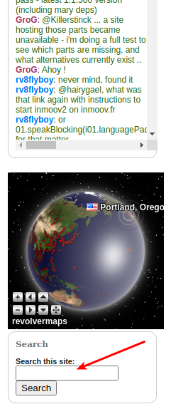The site search is under the shoutbox and globe