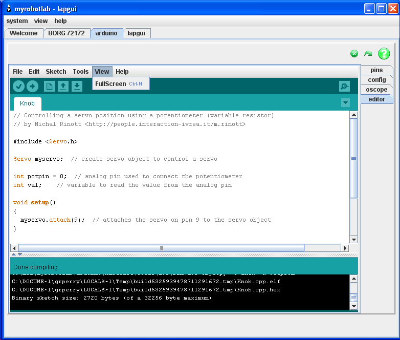 05/15/2012 - Where to cut?  I tried cutting the compiler and uploader out of the Arduino IDE - but that got messy (blood everywhere).  So now as an alternative, I'm trying to cut the GUI & Processing out of the Arduino IDE - then sew what's left onto the backend of the new MRL GUI.  Mwa ha ha ha  !