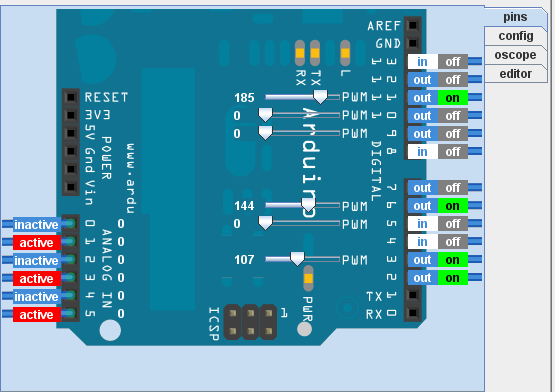 If you have any insight on what would be a "intuitive" on off switch (perhaps an LED?)  let me know.  The little "out" buttons you see change the pin mode (INPUT/OUTPUT)