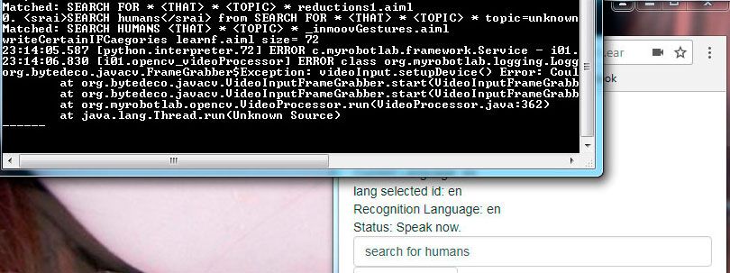 I open Myrobotlab and start opencv.